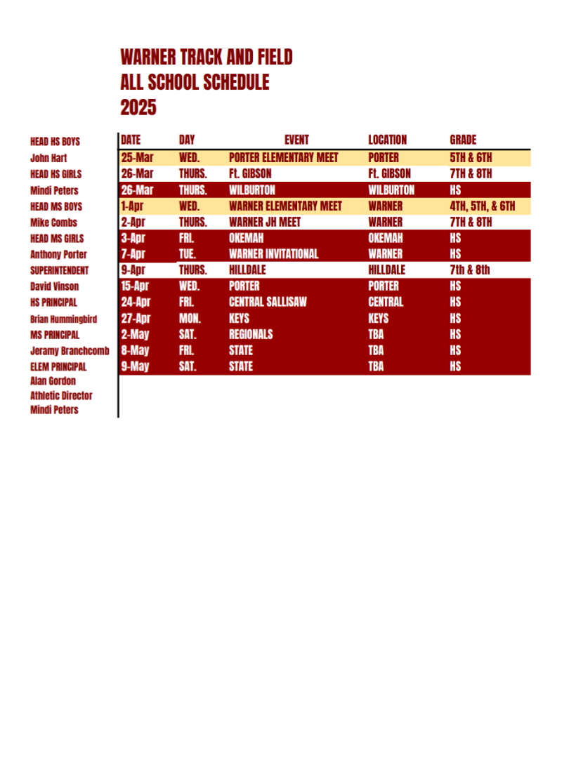 2026 Track Schedule